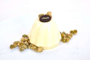 Delizia al cioccolato bianco e cuore di pistacchio con pistacchi caramellat