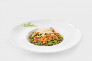Spaghettini alle ortiche con sedano, pomodoro ed Asiago